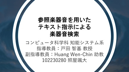 - 照屋 颯大, "テキストを用いた楽器音検索に向けた特徴表現分析"