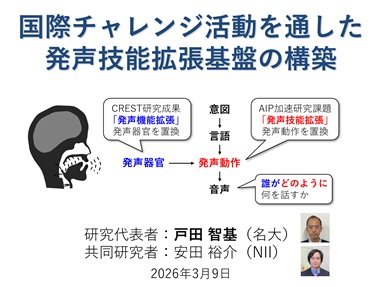 2025年度AIPプロジェクトシンポジウム(東京)にて,2025年度AIP加速課題「国際チャレンジ活動を通した発声技能拡張基盤の構築」に関する研究成果発表を行いました.