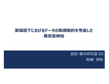 - 畔栁 伊吹, "実環境下におけるデータの取得制約を考慮した異常音検知," 情報学研究科知能システム学専攻博士論文(主査:武田 一哉)