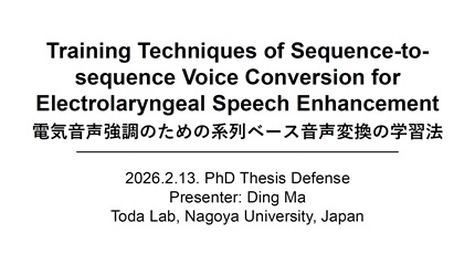 Conversion for Electrolaryngeal Speech Enhancement," 情報学研究科知能システム学専攻博士論文(主査:戸田 智基)