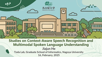 - Jiajun He, "Studies on Context-Aware Speech Recognition and Multimodal Spoken Language Understanding," 情報学研究科知能システム学専攻博士論文(主査:戸田 智基)