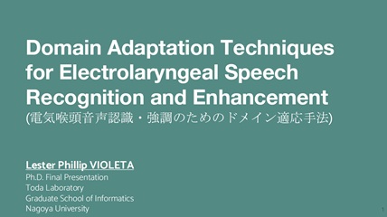 - Lester Phillip Gabata Violeta, "Domain Adaptation Techniques for Electrolaryngeal Speech Recognition and Enhancement," 情報学研究科知能システム学専攻博士論文(主査:戸田 智基)