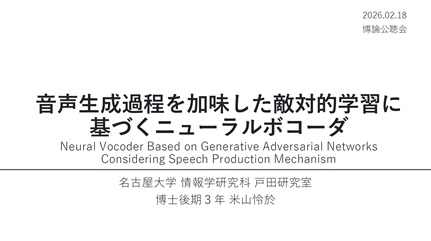 - Reo Yoneyama, "Neural Vocoder Based on Generative Adversarial Networks Considering Speech Production Mechanism," 情報学研究科知能システム学専攻博士論文(主査:戸田 智基)