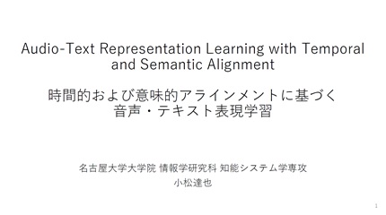 - Tatsuya Komatsu, "Audio-Text Representation Learning with Temporal and Semantic Alignment," 情報学研究科知能システム学専攻博士論文(主査:武田 一哉)